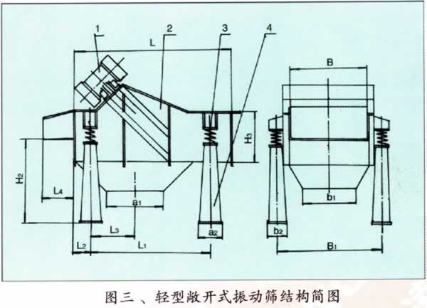 圖五、圖六注:1、篩體 2、振動(dòng)電機(jī) 3、下料斗 4、減振彈簧 5、支座 |